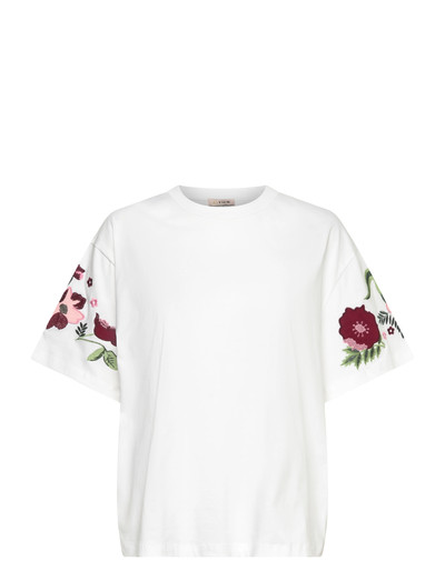 Blumenstickereien auf den Ärmeln verleihen diesem klassischen T-Shirt eine unverwechselbare, feminine Note. Dieses kurzärmelige T-Shirt hat einen bequemen Rundhalsausschnitt und eine normale Passform.