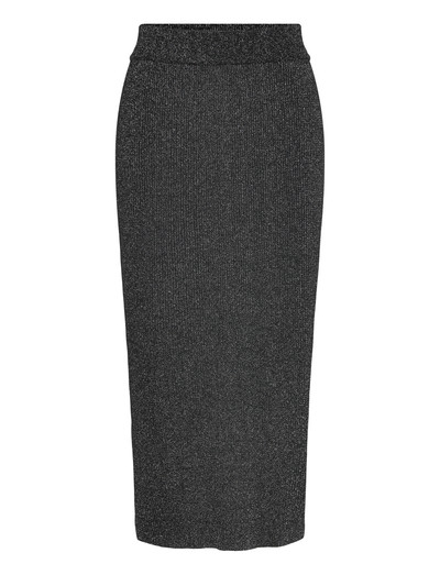 Dieser figurbetonte Rock ist aus geripptem Lurexmaterial gefertigt und bietet einen Hauch von Schimmer. Seitliche Schlitze verbessern die Bewegungsfreiheit, während der elastische Bund für eine bequeme Passform sorgt.