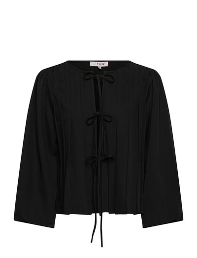 Diese leichte Jacke besticht durch zarte Falten und einen charmanten Bindebandverschluss vorne. Die voluminösen, langen Ärmel sind mit elastischen Bündchen versehen, wodurch eine entspannte, feminine Silhouette entsteht. Sie ist passgenau geschnitten und eine mühelose Ergänzung für jede Garderobe.