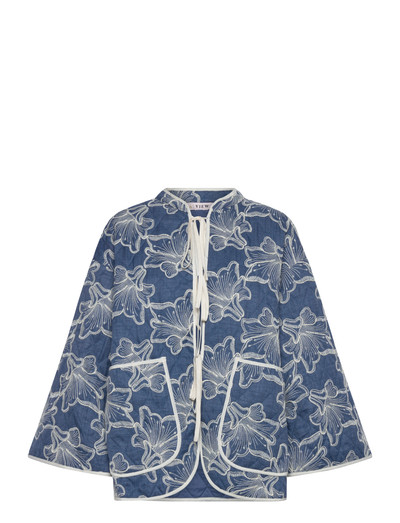 Diese leichte Jacke mit gesticktem Blumendruck bietet einen entspannten, eleganten Look. Das Design umfasst weite Ärmel und einen vorderen Bindebandverschluss. Sie verfügt außerdem über zwei große Vordertaschen, die Funktionalität mit einem unverwechselbaren Stil verbinden. Entworfen für eine übergroße Passform.