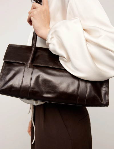 Diese Schultertasche aus glattem, glänzendem Leder bietet einen eleganten und raffinierten Look. Die längliche Form wird durch einen sicheren Klappenverschluss und mehrere Innenfächer für eine organisierte Aufbewahrung ergänzt. Lange Henkel sorgen für ein angenehmes Tragegefühl, während eine wiederverwendbare Tragetasche und ein Kartenhalter aus Leder zusätzlichen Mehrwert bieten.