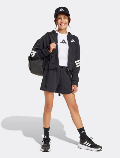 Repräsentiere die legendären 3-Streifen in dieser Trainingsjacke mit durchgehendem Reißverschluss und Kapuze. Diese locker geschnittene Jacke aus einem Baumwollmix mit Recycling-Anteil bietet sowohl Komfort als auch einen Beitrag zu verantwortungsvollen Praktiken. Rippdetails speichern die Wärme, während die Vordertaschen praktischen Stauraum für wichtige Dinge unterwegs bieten.