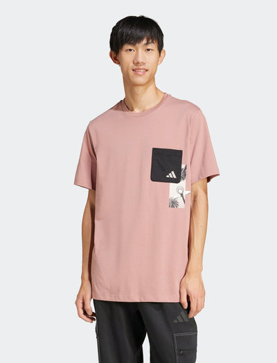 Training/gymDieses adidas Sportswear T-Shirt ist eine stilvolle und bequeme Wahl für den Alltag. Es verfügt über einen klassischen Rundhalsausschnitt und kurze Ärmel sowie ein einzigartiges Taschen-Design auf der Brust. Die Tasche hat einen grafischen Druck, der dem Design einen Hauch von Persönlichkeit verleiht.