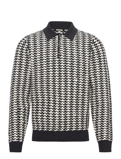 Dieses langärmlige Polohemd besticht durch ein markantes Hahnentrittmuster und sorgt für einen edlen Look. Die Strickkonstruktion bietet Wärme und Komfort, während der klassische Polokragen und die halbe Knopfleiste einen Hauch von Eleganz verleihen. Gerippte Bündchen und ein gerippter Saum sorgen für eine bequeme Passform.