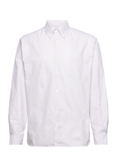 Klare, vertikale Streifen verleihen diesem klassischen Button-Down-Hemd eine raffinierte Note. Das langärmlige Design verfügt über einen spitzen Kragen und eine Brusttasche, die sowohl Stil als auch Funktionalität bieten.