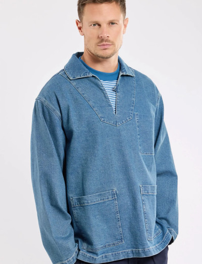 Regular fitDieser aus robustem Denim gefertigte Schlupfkasack mit langen Ärmeln verfügt über einen Umlegekragen und praktische aufgesetzte Taschen vorne. Dieses Teil ist eine Anspielung auf klassische Arbeitskleidung mit seiner entspannten Silhouette.
