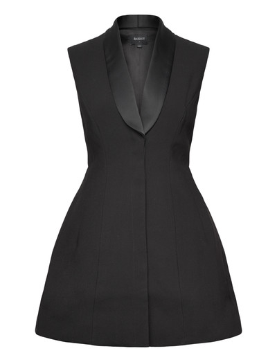Dieses elegante und raffinierte Minikleid besticht durch ein Satinrevers, das einen Hauch von Luxus verleiht. Das ärmellose Design und die taillierte Silhouette machen es perfekt für Abendveranstaltungen.