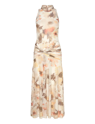 Dieses Midikleid aus leichtem Mesh zeichnet sich durch eine schmeichelhafte Silhouette aus. Das Design verfügt über einen hohen Ausschnitt und ein markantes Twist-Detail in der Taille, was die Gesamtwirkung unterstreicht.