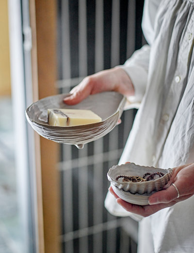 The Bakur Trays by Bloomingville is a set of 2 small bowls shaped like beautiful seashells on small legs. The beige and raw surface is a beautiful contrast to the white glaze and contributes to a natural look. The bowls are perfect for jewellery.