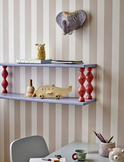 The Bibiola Shelf by Bloomingville MINI is made of MDF with blue shelves and twisted brown legs. Its sculptural shape and playful color contrast make it a charming piece for any children's room.