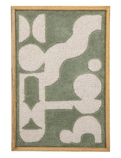 The Longton Wall Decor by Bloomingville is harmonious, organic shapes on a soft tufted surface in a beautiful shade of green and light colors. The graphic pattern is beautifully framed in a wood frame giving it a natural and timeless expression. The wall decoration can be hung both vertically and horizontally and will add warmth and character to any wall.