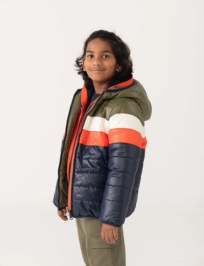 Dieser gesteppte Parka bietet zwei Looks in einem und bietet vielseitige Styling-Optionen. Das Design verfügt über einen Reißverschluss vorne und eine gemütliche Kapuze, was ihn zu einer praktischen Wahl für kühleres Wetter macht.