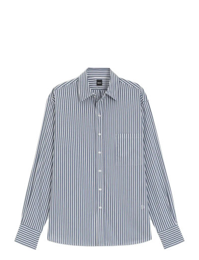 Dieses langärmlige Hemd wurde mit Fokus auf Stil und Komfort gefertigt und verfügt über ein klassisches Streifenmuster. Das Design beinhaltet eine Brusttasche, die seiner raffinierten Ästhetik einen Hauch von Zweckmäßigkeit verleiht. Sein vielseitiges Design macht es für eine Reihe von Anlässen geeignet.