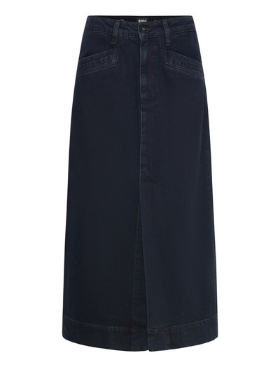 Dieser Rock in vielseitiger Midi-Länge verfügt über einen Schlitz vorne für mehr Bewegungsfreiheit. Seine klassische Denim-Konstruktion wird durch schräge Vordertaschen ergänzt, die eine Mischung aus Stil und Funktionalität bieten.