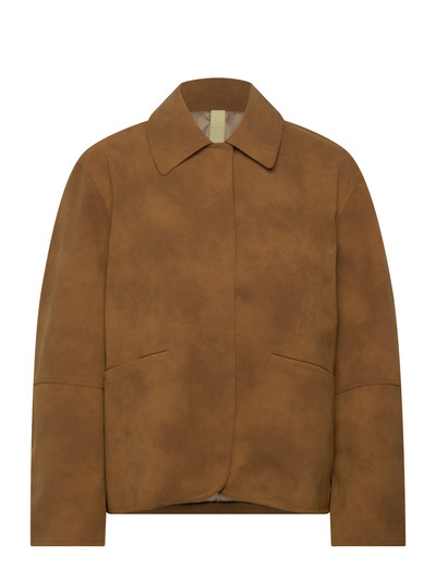 Diese Jacke in lockerer Passform ist aus einem veganen Wildlederimitat mit leicht gebürsteter Oberfläche gefertigt. Verdeckte Druckknöpfe vorne, ein normaler Kragen, aufgesetzte Pattentaschen und eine Innentasche ergänzen das Design.