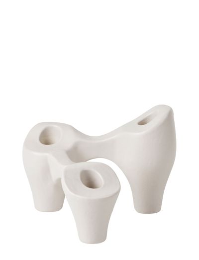 A modern candle holder saluting the classic candelabra. Elevated ambiance with organic forms and varying candle heights. Exciting and sculptural centerpiece for a dining table or coffee table