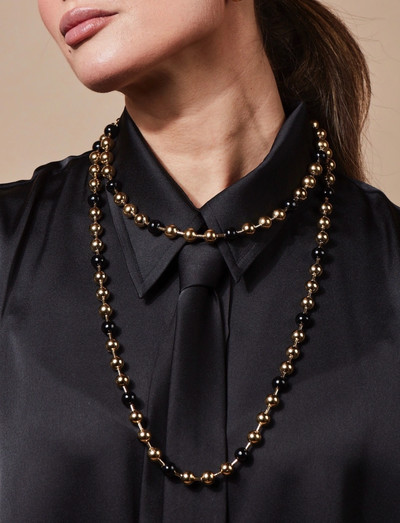 Diese Halskette mit runden Perlen und Emaille-Details bietet einen Hauch von moderner Eleganz. Das wechselnde Perlendesign sorgt für ein optisch ansprechendes und vielseitiges Accessoire.