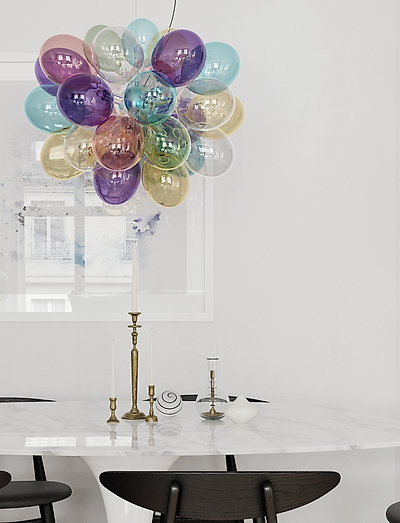 Treat yourself to the ultimate in luxury and style with the Gross ceiling lamp Ø50cm, a floating cloud of 37 pieces of transparent, hand-blown glass cups that resemble atoms and diffuse a wonderful shimmer. Gross is By Rydén’s own line and an item that stands out in our online store. The lamp is available in several colours; Matt white, Burgundy, Amber, Smoky grey and Multicoloured. Let the Gross ceiling lamp become an enhancement to your room and create a real attraction in your home. It looks fine as the only item from the line or together with other items from Gross. The lamp measures 50 cm in diameter, is dimmable and can be raised and lowered. The total cord length is 120 cm. The light source with a G9 socket is bought separately.
