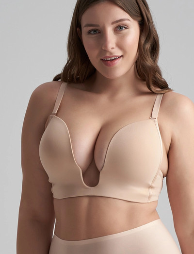 Dieser BH wurde für tiefe Ausschnitte entworfen und bietet einen eleganten Lift und einen natürlichen Push-up-Effekt. Die multifunktionalen Träger können an verschiedene Stile angepasst werden, wodurch er ideal für vielseitige Outfits ist. Mit einem breiten, stützenden Unterbrustband bietet er zusätzlichen Komfort und Stabilität den ganzen Tag über, während die saubere Verarbeitung für einen glatten Look unter enger Kleidung sorgt und Ihnen eine perfekte Passform verleiht.