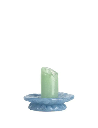 The Candlestick Lara XS, like its siblings, is both extravagant and delightful. This smaller version resembles sweet little pralines or macarons in pastel shades – simply irresistible. Black and beige are combined with soft, lively tones like lemon yellow, mint green, and ocean blue. Perfect for mixing and matching in playful combinations or pairing with its larger siblings. The base and top are shaped like a flower, catching dripping wax like a built-in candle cuff. Made from mouth-blown glass that evokes the charm of classic glass art. Handmade. Variations in colour and texture may occur. Designed by Byon Studio.