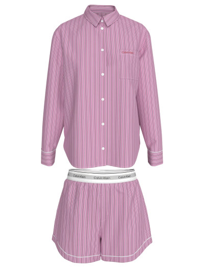Entspannen Sie stilvoll mit diesem Popeline-Pyjama-Set. Das Set beinhaltet ein langärmeliges Hemd mit Knopfleiste und Brusttasche sowie passende Shorts mit elastischem Bund. Perfekt zum Entspannen oder für eine erholsame Nachtruhe.