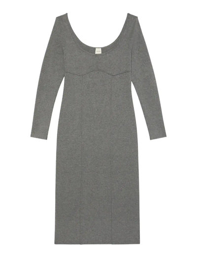 Dieses Midikleid ist auf eine schlanke Silhouette ausgelegt und verfügt über lange Ärmel und dezenten Einsätze, die für einen Hauch Struktur sorgen. Der runde Ausschnitt verleiht diesem vielseitigen Kleidungsstück eine moderne, schmeichelhafte Note.