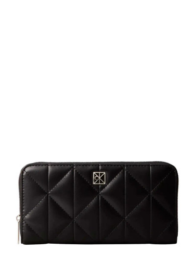 Eine gesteppte Oberfläche und ein umlaufender Reißverschluss zeichnen diese elegante Geldbörse aus. Das Innere verfügt über mehrere Kartenfächer und Fächer, um das Wesentliche organisiert aufzubewahren.