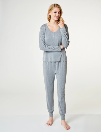 Dieses langärmlige T-Shirt mit klassischem Henley-Ausschnitt und Knopfleiste bietet eine entspannte Passform. Ein vielseitiges Kleidungsstück zum Layern oder solo tragen.