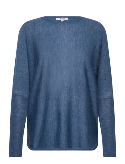 Dieser leichte Strickpullover bietet ein weiches Tragegefühl und hohen Tragekomfort. Er zeichnet sich durch stilvolle Rippstrickärmel und einen dezent abgerundeten Saum aus, der mit einem zarten goldenen Emblem am Ausschnitt versehen ist.