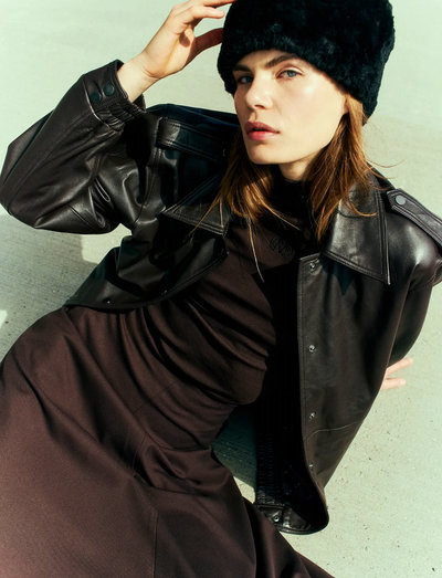 Diese Jacke aus hochwertigem Leder zeichnet sich durch eine Oversize-Silhouette für eine moderne, entspannte Passform aus. Das Design verfügt über ein dezentes Logo-Detail, das diesem stilvollen Oberbekleidungsstück einen Hauch von Understatement verleiht.