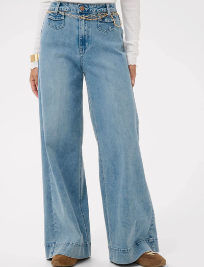 Diese Jeans mit weitem Bein bietet eine entspannte Silhouette und einen Hauch von Vintage-Charme. Das Design verfügt über Vordertaschen und ein dekoratives Kettendetail, das diesem bequemen Style eine einzigartige Note verleiht.