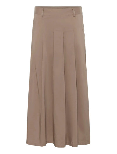 Dieser Rock mit klassischem Falten-Design bietet eine zeitlose Silhouette. Die Midi-Länge und der taillierte Bund machen ihn zu einer vielseitigen Ergänzung für jede Garderobe.