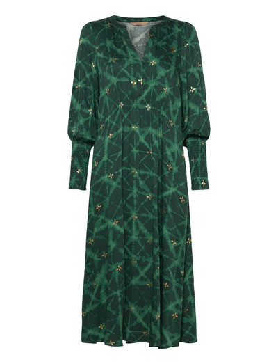 Mit ihrer fließenden Silhouette bietet dieses Midikleid eine bequeme und stilvolle Option für jeden Anlass. Das Design verfügt über lange Ärmel mit gesmokten Bündchen und einen schmeichelhaften V-Ausschnitt.