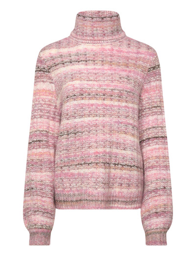Dieser Rollkragenpullover bietet ein angenehmes Tragegefühl und eine entspannte Silhouette. Die weiche Textur und das horizontale Muster machen ihn zu einer bequemen und stilvollen Wahl für kühlere Tage.