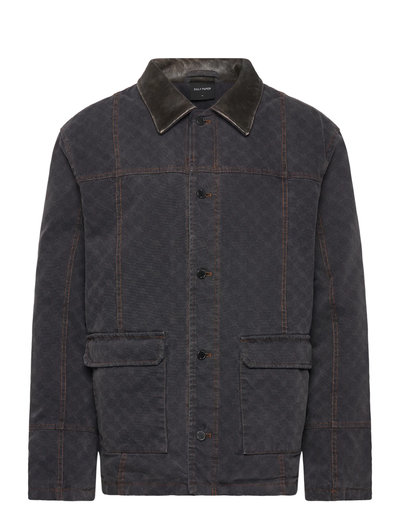Diese wattierte Jacke aus schwerem Baumwolldenim besticht durch ein gelasertes Monogramm-Design. Der Oversize-Schnitt sorgt für Komfort und Style, während der Lederkragen einen Hauch von Eleganz verleiht. Sie verfügt außerdem über einen Schaftknopfverschluss, Seitentaschen, offene Kanten an den Ärmeln und eine praktische Innentasche.