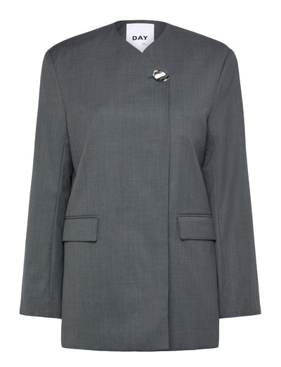 Dieser taillierte Blazer bietet mit seinen klaren Linien und strukturierten Schultern eine elegante Silhouette. Das einreihige Design wird mit einem einzigartigen, dekorativen Verschluss geschlossen, der einen Hauch von moderner Eleganz verleiht. Er verfügt außerdem über dezente Pattentaschen, die seinen stromlinienförmigen Look unterstreichen.