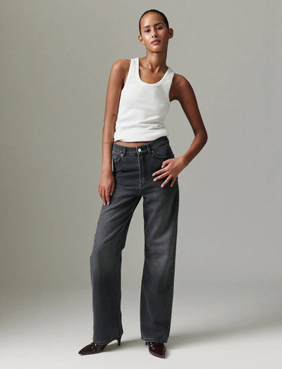 Diese High-Rise-Jeans zeichnen sich durch ein klassisches Five-Pocket-Design und eine bequeme, schmale Passform an Hüfte und Taille aus. Das weite Bein sorgt für eine moderne Silhouette, während der Hosenschlitz mit Knopfverschluss für einen sicheren Sitz sorgt.