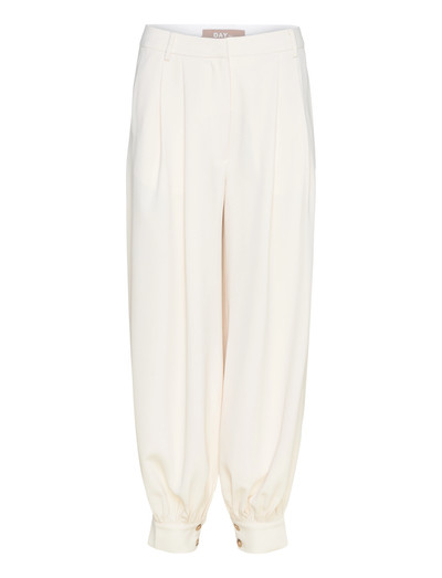 Diese Hose aus Gabardine bietet eine raffinierte Silhouette. Das Design zeichnet sich durch eine hohe Taille und ein entspanntes Bein aus, das zu einem Bündchen am Saum hin schmaler wird, wodurch eine moderne und dennoch bequeme Passform entsteht.