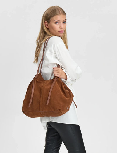 Diese aus weichem Wildleder gefertigte und mit robusten Kalbslederriemen versehene Tasche bietet sowohl Eleganz als auch Strapazierfähigkeit. Als idealer Begleiter für tägliche Besorgungen oder Wochenendausflüge verfügt sie über einen sicheren Druckknopf- und Magnetverschluss. Die verstellbaren Riemen ermöglichen eine individuelle Passform und gewährleisten Komfort, egal ob sie in der Hand oder über der Schulter getragen wird. Ihr geräumiges Inneres bietet ausreichend Platz für alle wichtigen Dinge und macht sie zu einer vielseitigen Ergänzung für jede Garderobe.