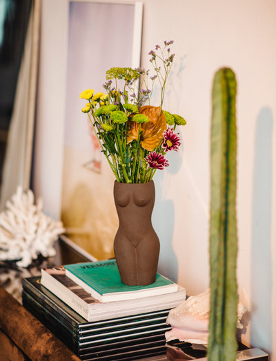 Ceramic vase shaped as a female body that reminds of the beauty and diversity of nudity.