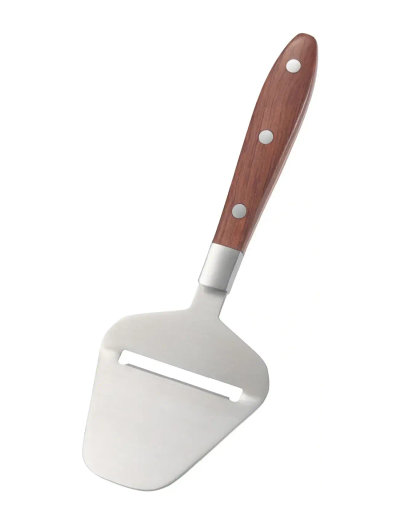 Timeless cheese slicer with stainless steel blade and elegant wooden handle. Perfect for slicing even pieces for breakfast, sandwiches, or cheese platters.