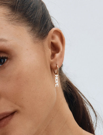 Diese Creolen verfügen über einen baumelnden Anhänger mit einer bedeutungsvollen Botschaft. Das schlichte Design macht sie ideal für den Alltag und verleiht jedem Outfit einen Hauch von Inspiration.