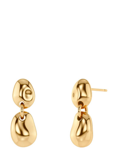Diese Ohrringe zeigen ein minimalistisches Design mit organischen Formen. Ein größerer, einzigartig geformter Stein baumelt anmutig von einem etwas kleineren Stein und sorgt so für einen raffinierten und auffälligen Look. Mit einer glänzenden 14-karätigen Vergoldung versehen.