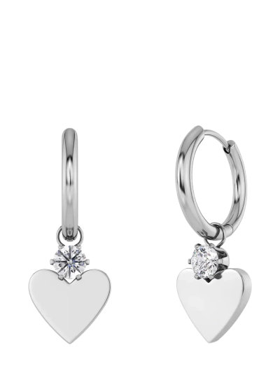 Ein stilisiertes Herz und ein funkelnder Stein verbinden sich mit minimalistischen Formen auf diesen Creolen. Die glänzenden Edelstahl-Ohrringe verfügen über einen abnehmbaren Anhänger, der mit einem Herz und einem kleinen funkelnden Stein verziert ist. Diese sind nickelfrei und wasserabweisend.