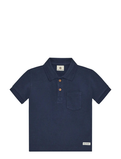 Polo t-shirt from EN FANT. This polo has short sleeves and a collar. The collar edge has a little detail. It has a pocket at the chest and can be opened at with buttons at front .