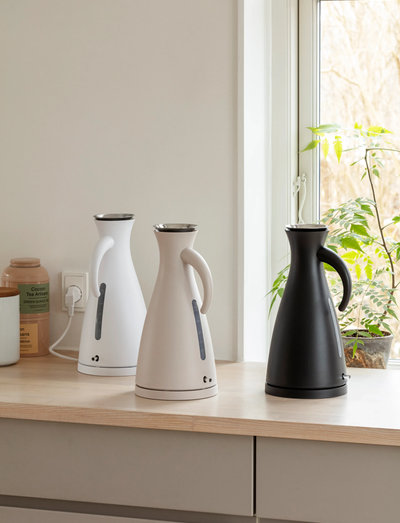 This electric kettle is inspired by the iconic Eva Solo vacuum jug and boasts the same distinctive contouring and practical features. Fill the kettle without removing the lid, and enjoy the reassurance of knowing that it always stays stably upright thanks to the wide shape and low centre of gravity of the base. The drip-free stainless steel pouring lip ensures no-spills precision serving, while the cordless design and the kettle’s 360-degree mobility makes it easy to carry from kitchen to coffee table. The kettle also features an easy-to-read water level indicator, a concealed heating element and auto shutoff boil-dry protection.