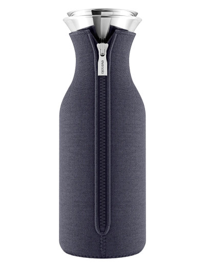The carafe fits most fridge door shelves and is ideal for both cold and hot refreshments. The 100% drip-free stainless steel pouring lip ensures that the contents end up in your drinking glass and not on the tablecloth. The flip-lid opens automatically when you tip to pour, for one-handed operation, and remains sealed when not in use. The distinctive cover makes the carafe nice to handle, helps maintain the temperature of the contents and absorbs any condensation to prevent spots and stains on your kitchen table. The cover is made of neoprene with a woven textile exterior. The glass and metal parts are dishwasher-safe. The cover is machine-washable at 30 °C.
