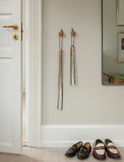Schlüpfen Sie mühelos in Ihre Schuhe und schützen Sie die Ferse vor Beschädigungen mit diesem Schuhlöffel. Seine verlängerte Länge reduziert die Notwendigkeit, sich zu bücken, was ihn zu einer praktischen Ergänzung Ihrer täglichen Routine macht. Das leichte Design sorgt für einen bequemen Griff, während die Lederschlaufe eine praktische Aufbewahrung in der Nähe Ihres Eingangs ermöglicht.