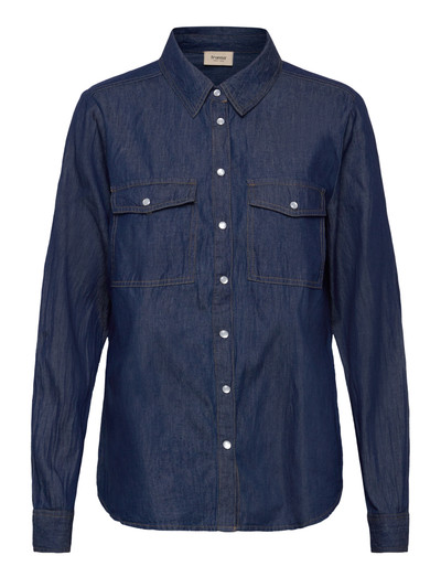 Dieses langärmlige Hemd aus weichem Denim verfügt über eine Knopfleiste und zwei Brusttaschen für einen klassischen, vielseitigen Look. Kombinieren Sie es mit Jeans für ein Denim-on-Denim-Ensemble oder mit einer eleganten Hose.