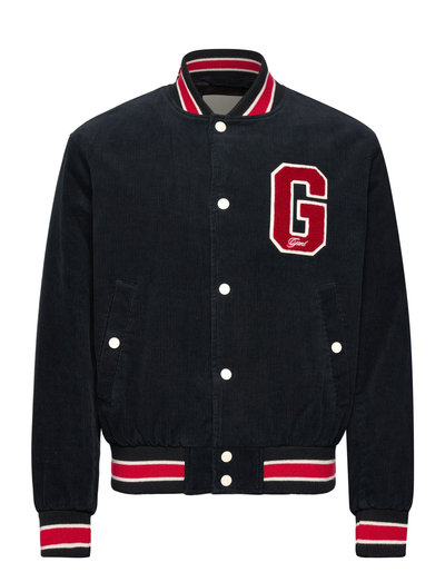 Diese Collegejacke mit Cordstruktur bietet eine klassische Silhouette mit einem modernen Touch. Die reguläre Passform sorgt für ein angenehmes Tragegefühl, während die Leistentaschen praktischen Stauraum bieten. Ein Frottee-Badge ziert die Brust und verleiht einen Hauch von College-Stil. Ihre Länge bis über die Hüfte macht sie zu einem vielseitigen Kleidungsstück für den Lagenlook.